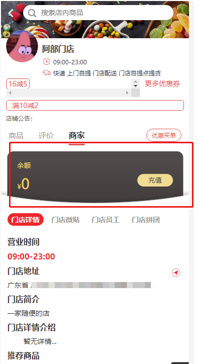 前端门店商品列表页增加门店余额显示